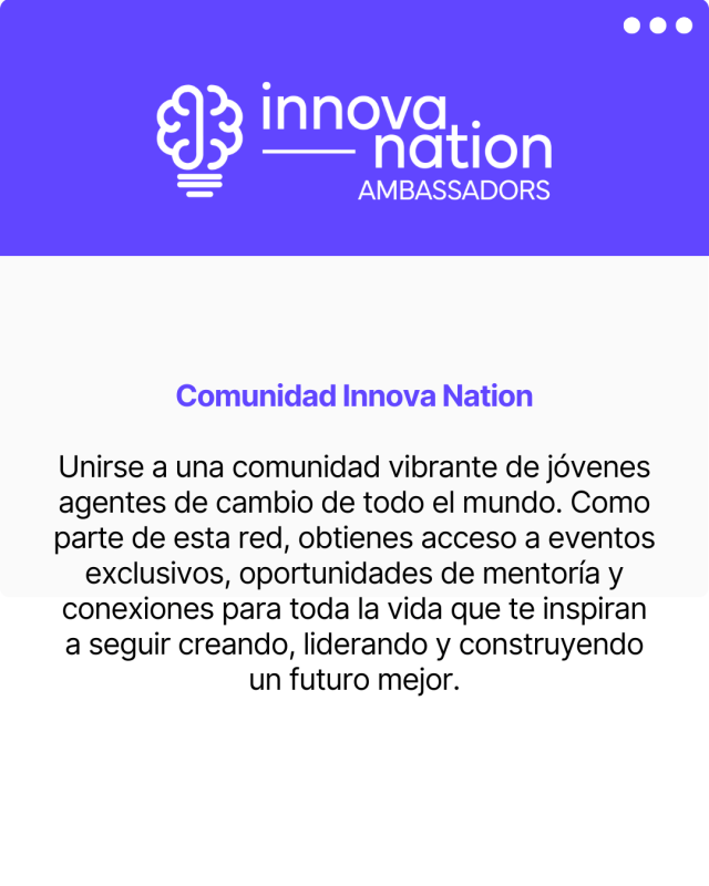 Fundada en Panamá, Innova Nation es un laboratorio educativo que acelera el talento, la creatividad y liderazgo de niños y jóvenes a través de una metodología propia y alineada al Marco de Educación 4.0 del Foro Economico Mundial con el objetivo de entrenar a la próxima generación de innovadores en la intersección del emprendimiento, la tecnología y la sostenibilidad.